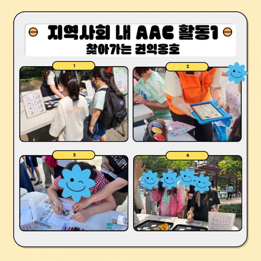 기관에서는 AAC 세계 인식의 달을 맞아 지역사회 내 찾아가는 권익옹호와 이용고객과 함께 AAC활동을 진행하였습니다.