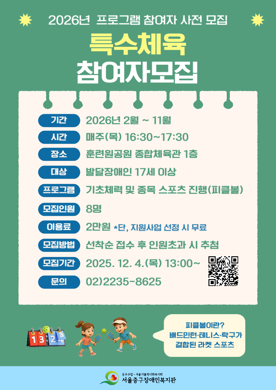 2026년도 특수체육 프로그램 참여자를 아래와 같이 모집합니다.