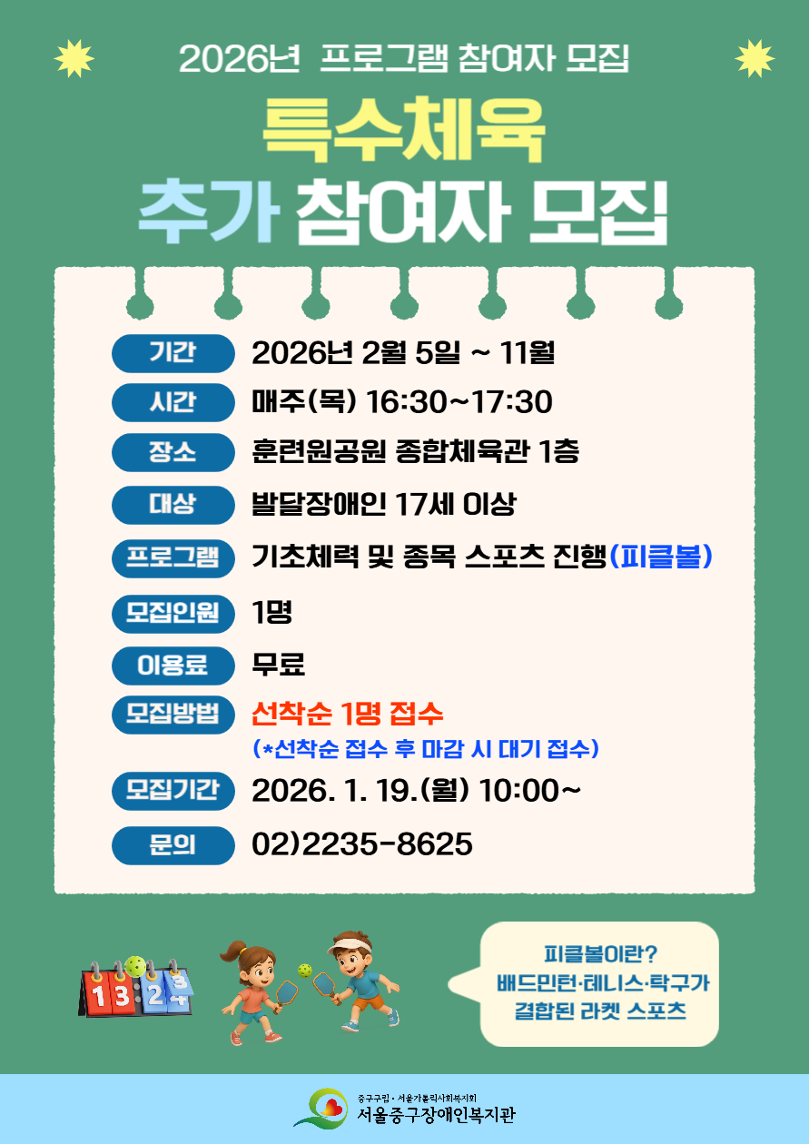 2026년도 특수체육 프로그램 참여자를 아래와 같이 모집합니다.
