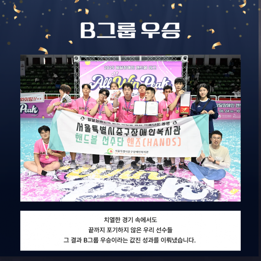 다시 한 번 B그룹 우승을 진심으로 축하드립니다!