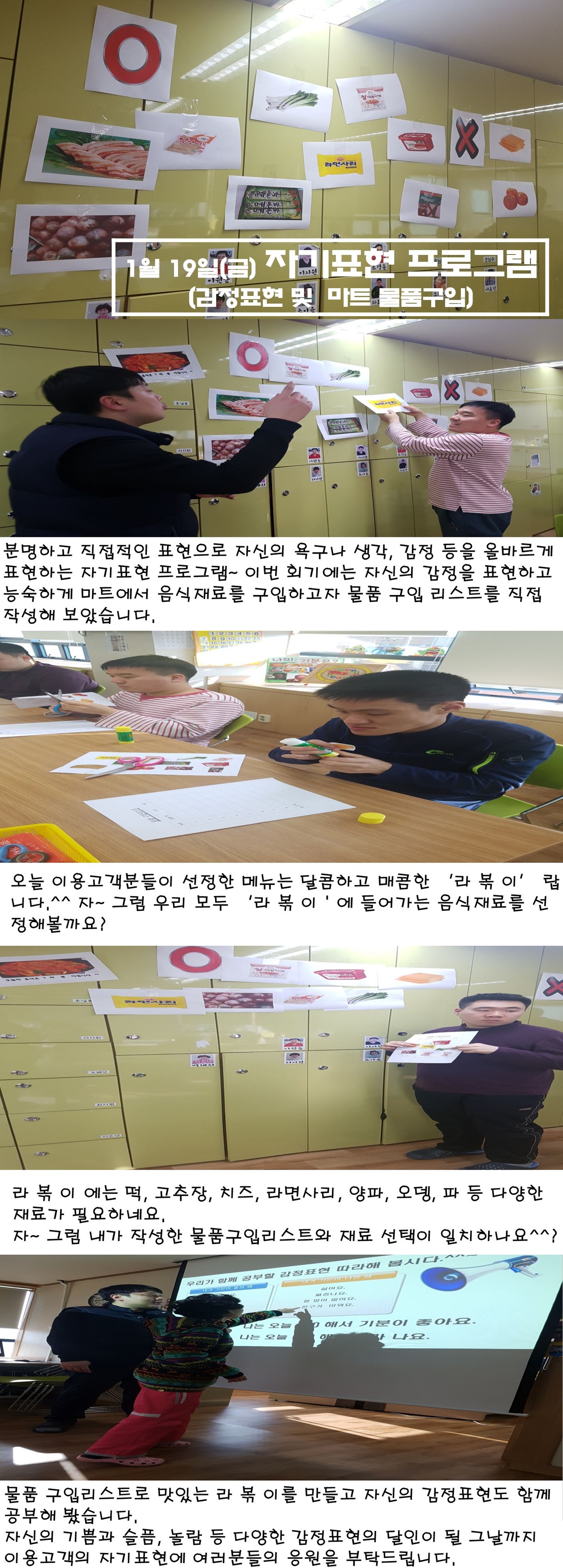안녕하세요~!  평생교육지원팀 주간활동반에서는 평소 이용고객들이 가고 싶은 곳, 보고 싶은 것, 하고 싶은 것등을  말로 표현하거나, 그림을 선택하여 몇가지 후보지 중 직접 여가생활 장소를 선택하고 있습니다^---^ 특히 이번 달에는 갑작스럽게 추워진 날씨로 인해 이용고객들이 두번의 선택을 하게..